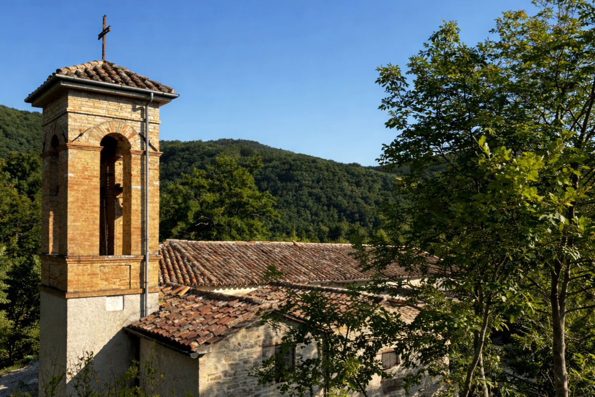 Benvenuto al Santuario di Santa Cecilia Eremita di Montelovesco, uno dei luoghi più suggestivi e più noti della devozione eugubina. Se sei arrivato fin qui, lo hai già capito che questo non è un santuario “da passaggio”. È un sito appartato, fuori dai circuiti consueti, dove l’autenticità non è una parola turistica, ma un’esperienza concreta. La strada che si fa più stretta, il verde che si infittisce, il silenzio che cresce, e poi, quasi all’improvviso, la piccola chiesa, semplice, raccolta, come custodita dalle colline. Sono don Francesco, parroco dell’Unità Pastorale Mocaiana di cui fa parte la parrocchia di Loreto. Affido il mio ministero e la nostra comunità alla tua preghiera.