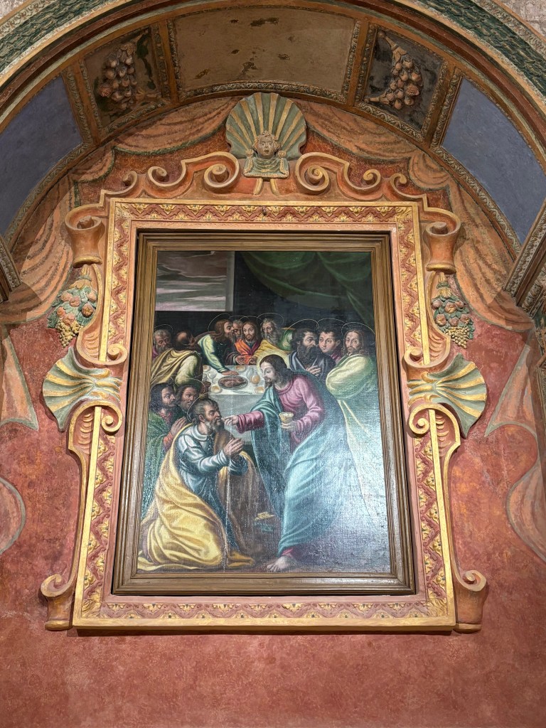 At the second altar, you will find the painting of the Communion of the Apostles, attributed to Virgilio Nucci.