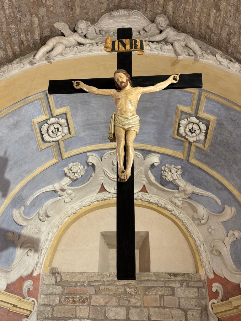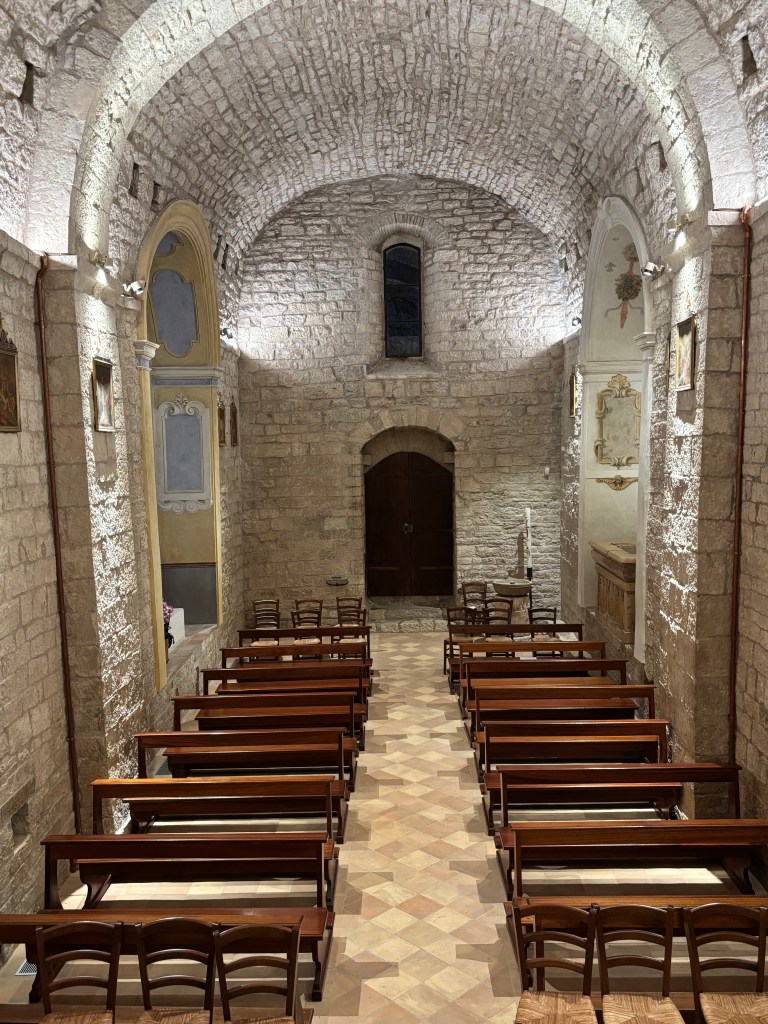 Before entering the church, I would like to share with you a few historical notes that will immerse you in the history of the land you are crossing. You are in the Eugubine countryside, within one of the most ancient dioceses of Christianity. To give just one example, the Diocese of Gubbio was already known in the 4th century: around 382 A.D., Saint Jerome, writing to demonstrate the equality of the successors of the apostles, chose it as a point of comparison: “Wherever a bishop may reside, whether in Rome, or in Gubbio, or in Constantinople… he has the same dignity and the same priestly rank…”